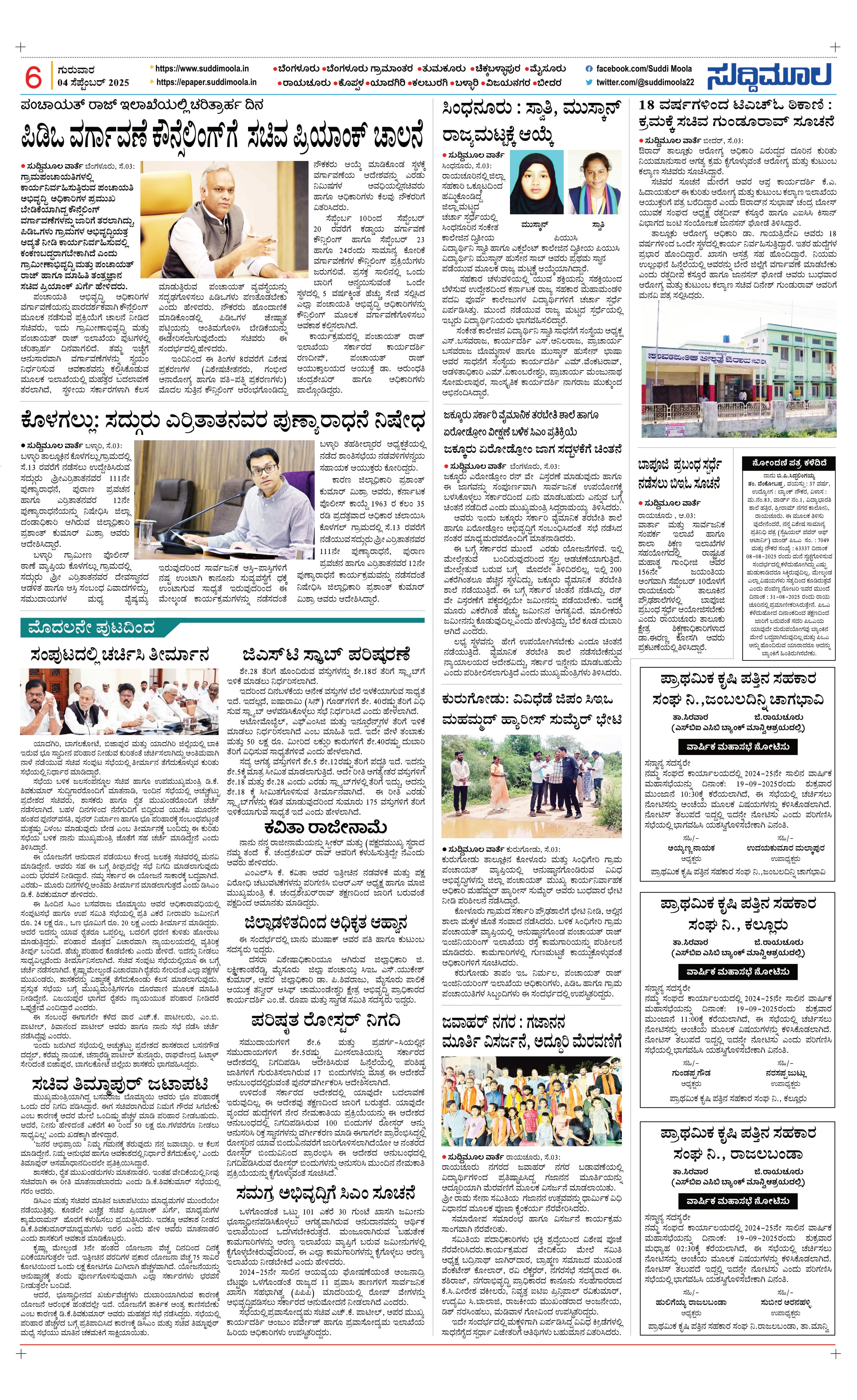 Suddimoola epaper 04-09-2025 Page: 6 September 04, 2025 << First << 6 >> Last >> Page 1Page 2Page 3Page 4Page 5Page 6Page 7Page 8 × Suddimoola epaper 04-09-2025 Page 1Page 2Page 3Ydg - 4Ydg - 5Page 6Page 7Page 8 << First << 6 >> Last >> Page 1Page 2Page 3Ydg - 4Ydg - 5Page 6Page 7Page 8